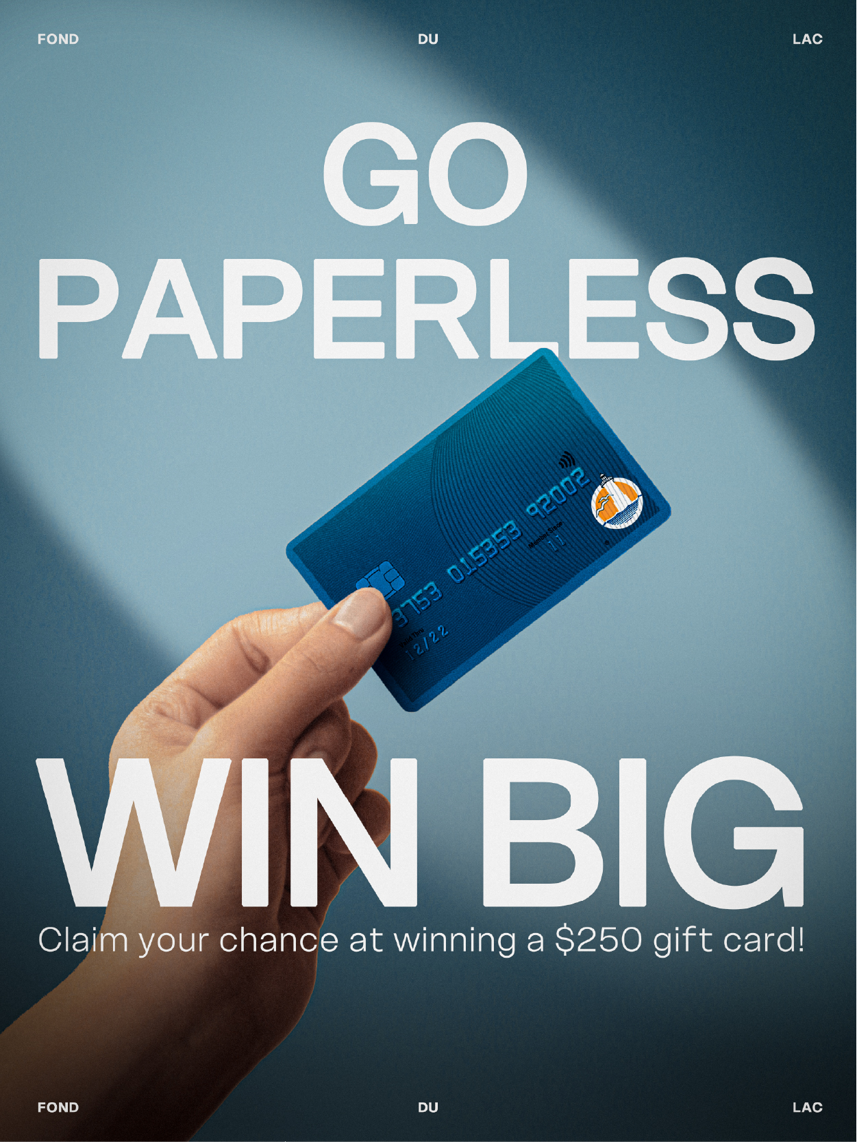 NO PURCHASE NECESSARY. Open to legal residents with an active City of Fond du Lac account in good standing. Must be enrolled in Paperless/eBill and the online web self-service portal (MyAccount) as of September 30th, 2025 to qualify. New enrollees must complete signup between August 20th, 2025 and September 30th, 2025. Limit one entry per account. Five winners will be selected at random and notified via email or phone. Terms subject to change.